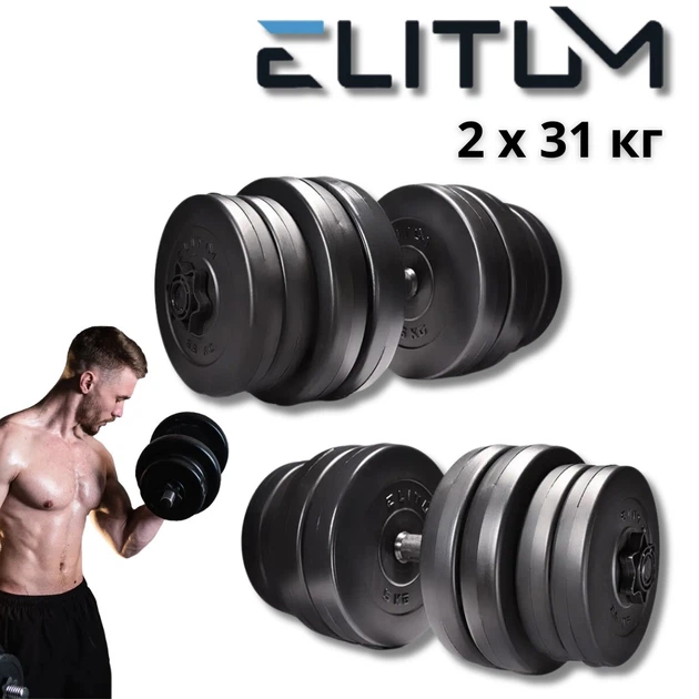 Гантелі Elitum 2х31 кг (62 кг) набірні. Металевий гриф, АБС-покриття, для дому, спортзалу, фітнесу