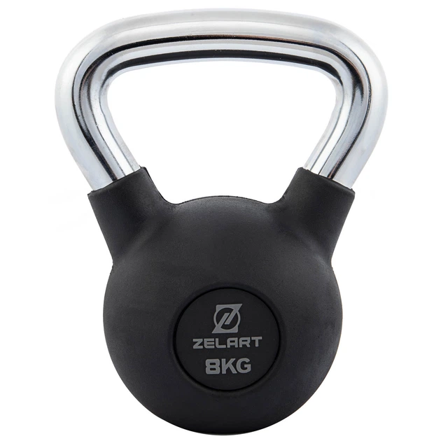 Гиря 8 кг тренувальна цільна чавунна гумова з хромованою ручкою Zelart 1 шт чорна TA-7794-8