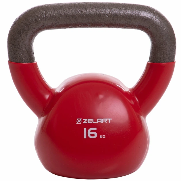 Гиря 16кг чавунна з вініловим покриттям Zelart 2680-16 вага 16 кг Red