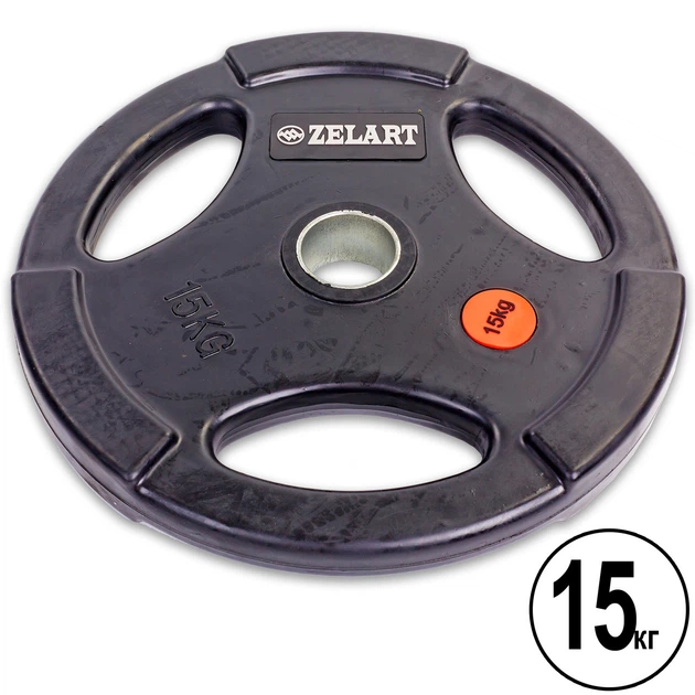 Млинець гумовий 15 кг для штанги з потрійним хватом Zelart 5160-15 1шт діаметр 51мм Black