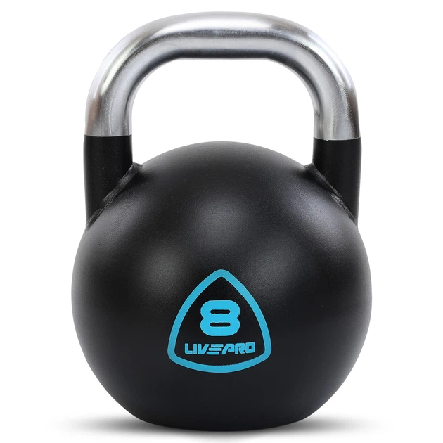 Гиря 8 кг змагальна цільна сталева забарвлена з хромованою ручкою LiveUp 1 шт чорна LP8042-8