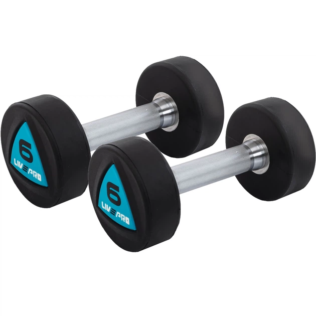 Гантелі цільні професійні з поліуретановим покриттям 2штуки LiveUp LP8075-6 (2х6кг) (поліуретанове покриття, ціна за 2шт)