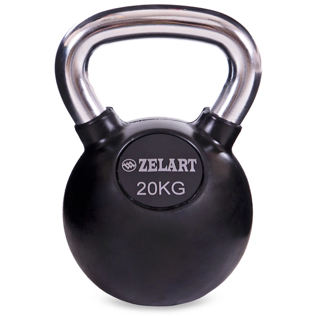 Гиря гумова з хромованою ручкою Кросфіт Zelart 20кг (метал хромований, чорний) (TA-5162-20)