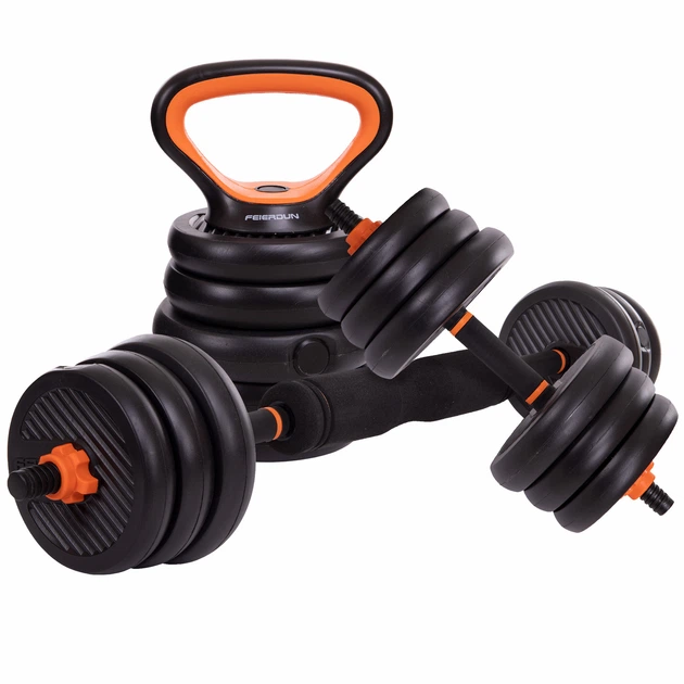 Набір гантелей зі штангою та гирями 6в1 20кг FED (2 грифи l-33см, млинці, наповнювач-цемент, компл. підовжувач грифа l-26см)