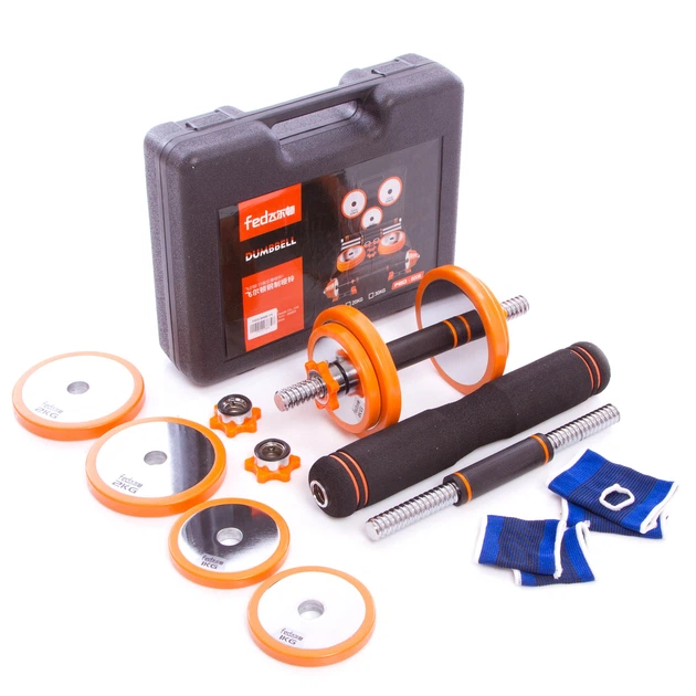 Набір гантелей зі штангою 3в1 у пластиковому кейсі 15кг FED (2 грифі, млинці сталь+PU, компл. підовжувач грифа) (FED-8008-15