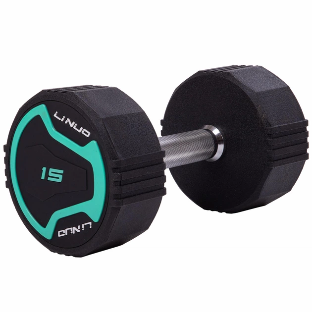 Гантель цільна професійна з поліуретановим покриттям LI NUO TA-3614-15 1шт 15кг чорний