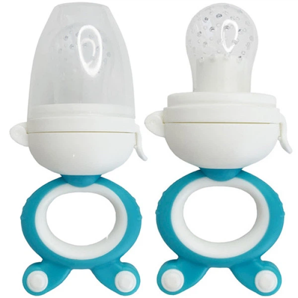 Силіконовий ніблер фруктниця з силіконовою сіточкою для прикорму, Зайчик, бакитний, 1 шт.