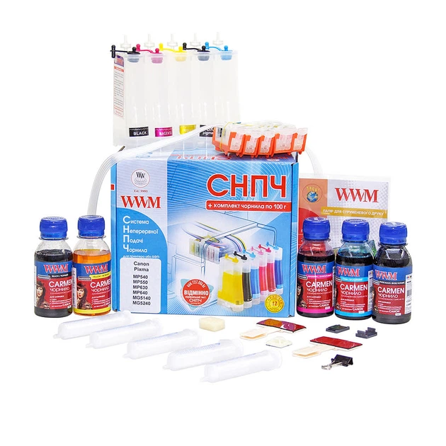 СНПЧ без Чіпів або без Чорнил для Canon PIXMA MP540 WWM BP/B/C/M/Y 5х100г IS.0121U