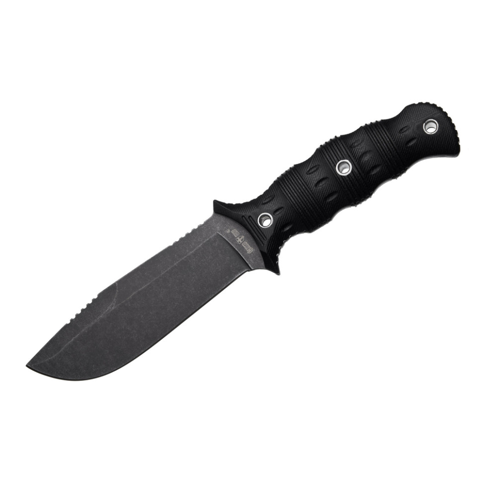 Нож 2791 UBQ – это простой нож в милитари-стиле. Его клинок изготовлен из нержавеющей стали марки 440С. Она обеспечивает длительное удержание остроты заточки, а также сопротивление коррозии. Качественную сталь дополнительно дополняет покрытие Black Stonewash, которое придает лезвию противобликовых свойств и лишает лишних следов использования.