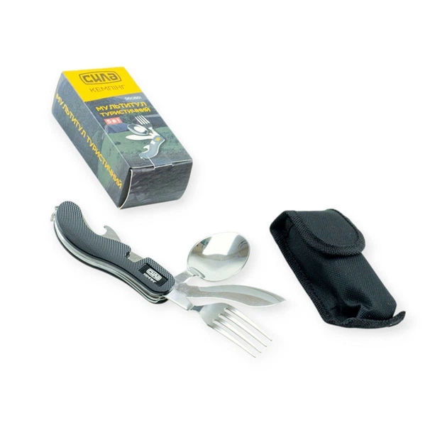 Мультиінструмент туристичний 5 в 1, L-100мм (чохол) нержавіюча сталь, ложка-виделка Сила