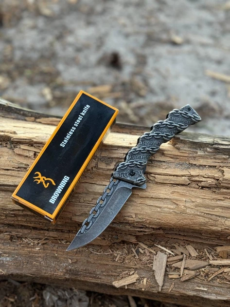 Ніж Кишеньковий Складаний 05-D c оригінальним орнаментом на ручці, сталь 440C