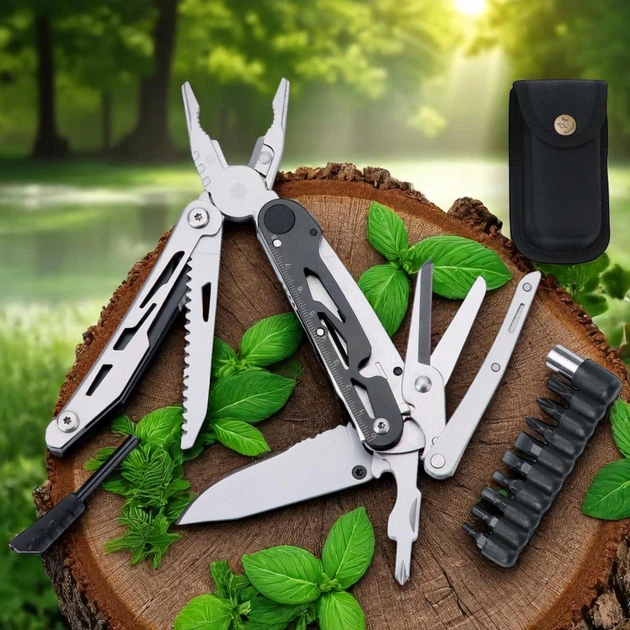 Мультитул туристичний Traveler Deluxe MQ039-DG 12в1 16 см з чохлом з бітами