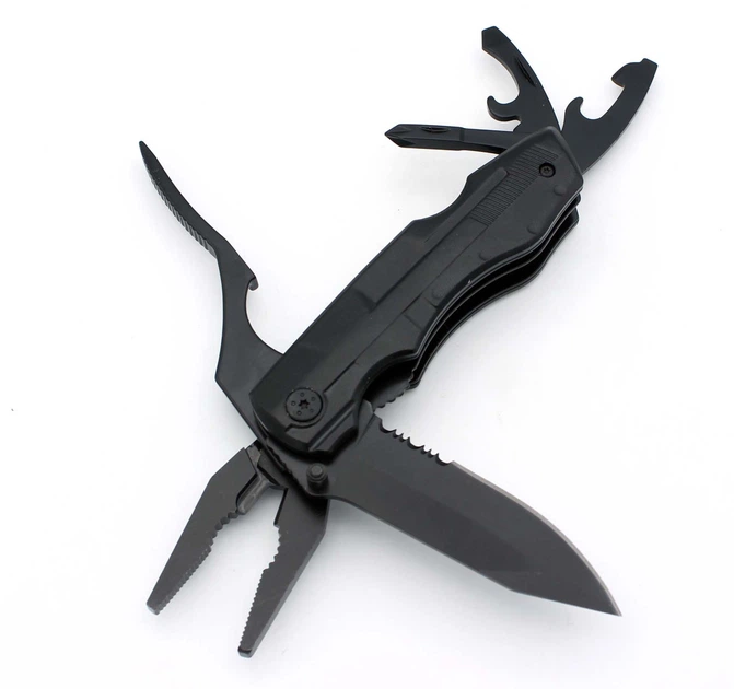 Мультитул (плоскогубці, викрутка, кусачки, ніж складаний, відкривачка) мульті інструмент TRAVELER в чохлі з 10 бітами Чорний
