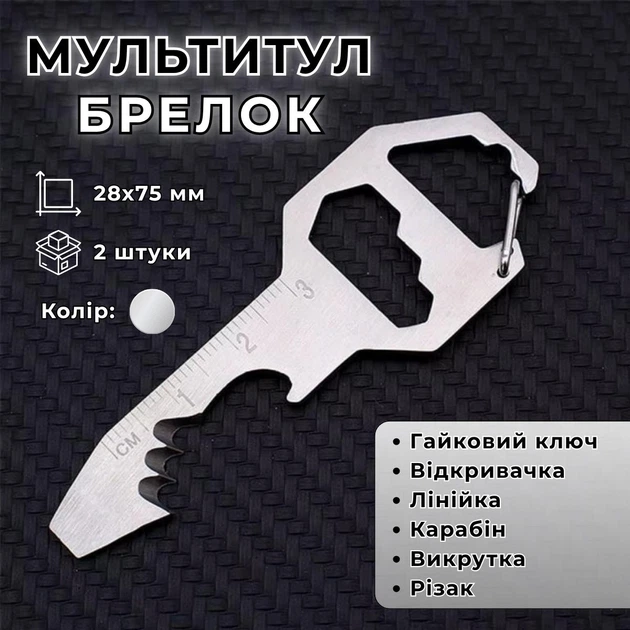 Мультитул-брелок 6 в 1 KeyWim, сріблястий, у наборі 2 штуки