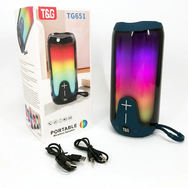 Bluetooth-колонка TG651 з RGB ПІДСВІТКОМ, акумуляторна колонка для музики, для вечірки. Колір: синій