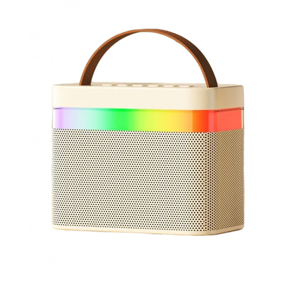 Портативна колонка K19 Bluetooth з LED-підсвічуванням, 2 мікрофони, біла, караоке