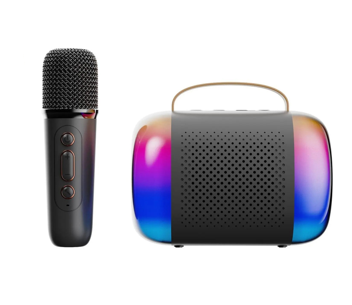Бездротова колонка K19 з функцією караоке, підсвіткою й мікрофонами black