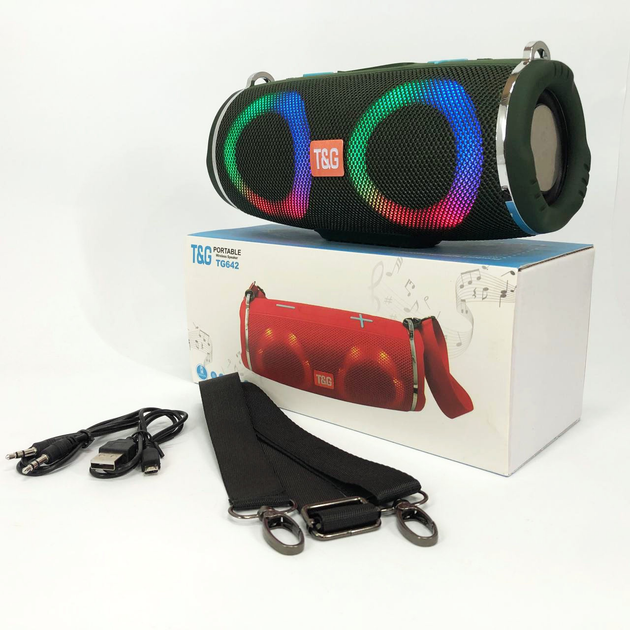 Портативна колонка TG642 з RGB-підсвіткою і ремінцем, гучна блютуз-колонка. Колір: зелений