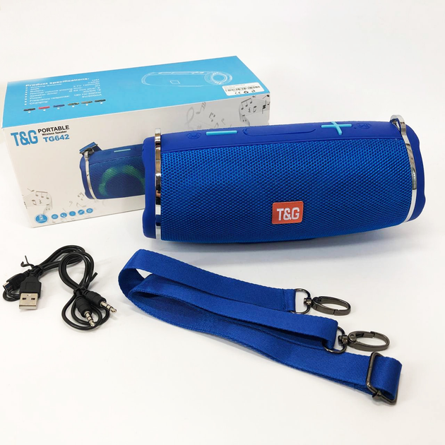 Портативна колонка TG642 з RGB підсвічуванням та ремінцем, акумуляторна колонка для музики. Колір: синій