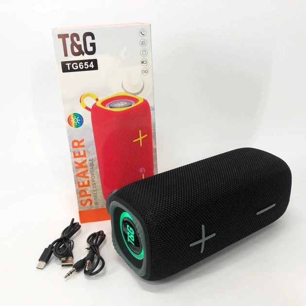 Портативна Bluetooth колонка TG654 8W з підсвічуванням, акумуляторна колонка для музики. Колір: чорний