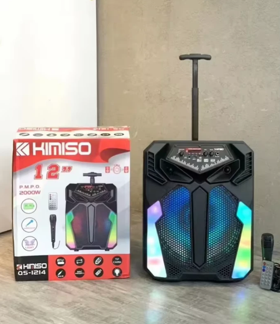 Портативна акустична колонка Kimiso QS-1214 (12") з мікрофоном та світломузикою