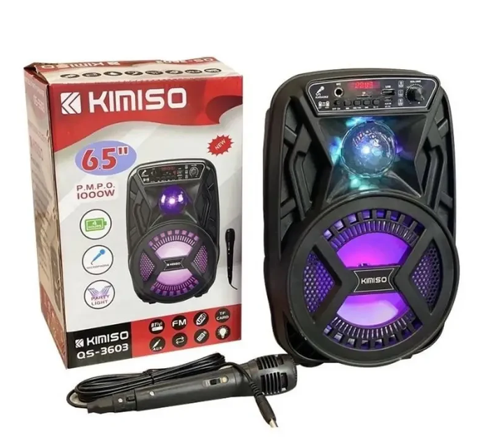 Портативна акустична колонка Kimiso QS-3603 (6.5") з мікрофоном та світломузикою
