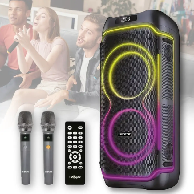 Автономна акустична система ZXX -5520, караоке з двома мікрофонами, пульт управління, 400Вт, 2 динаміки