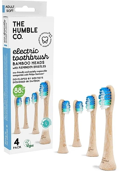 Насадки для електричної зубної щітки, м'які, бамбукові, блакитні, 4 шт. - The Humble Co.