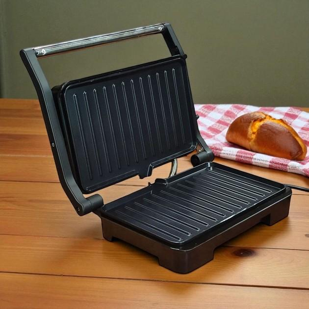 Гриль електричний Domotec MS притискний 1000 Вт контактний з антипригарним покриттям чорний (O4Z)
