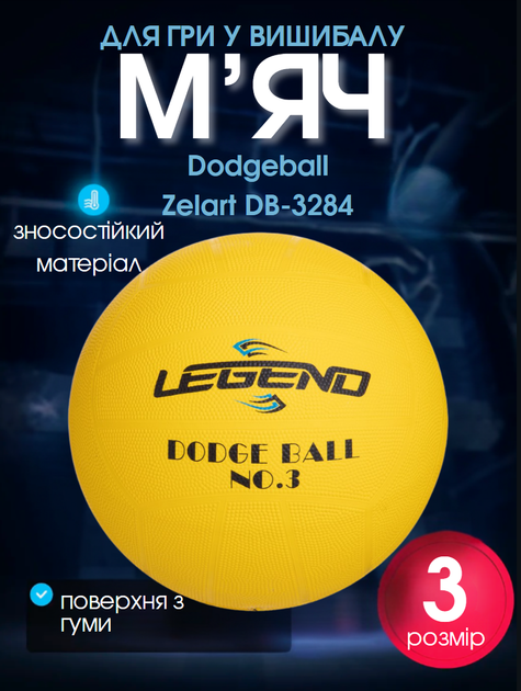 М'яч Dodgeball для гри у вишибалу Zelart №5 DB-3284 (гума, жовтий)