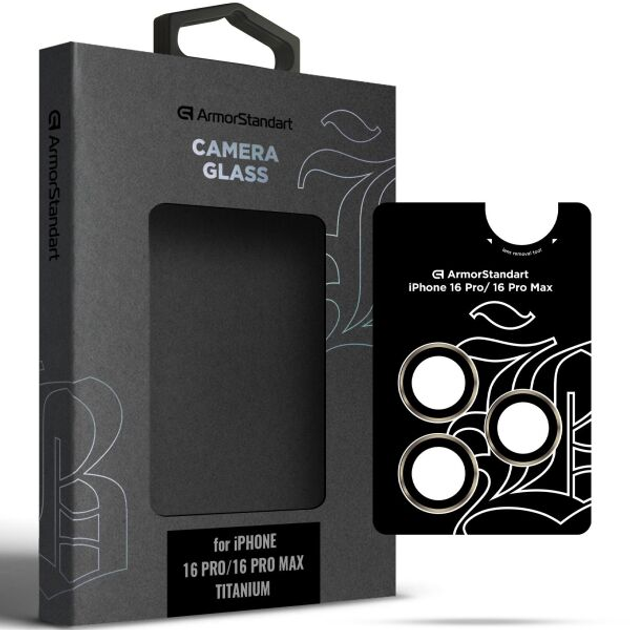 Захисне скло на камеру ArmorStandart Supreme Black Icon для Apple iPhone 16 Pro / 16 Pro Max - Titanium