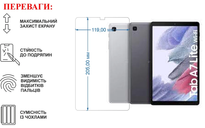 Захисне скло для планшета Samsung Galaxy Tab A7 Lite T225, товщина 0,28 мм