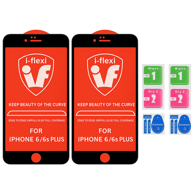 Захисне скло iFlexi для iPhone 6 Plus / 6s Plus з чорною рамкою, комплект 2 шт, в тех. упаковці