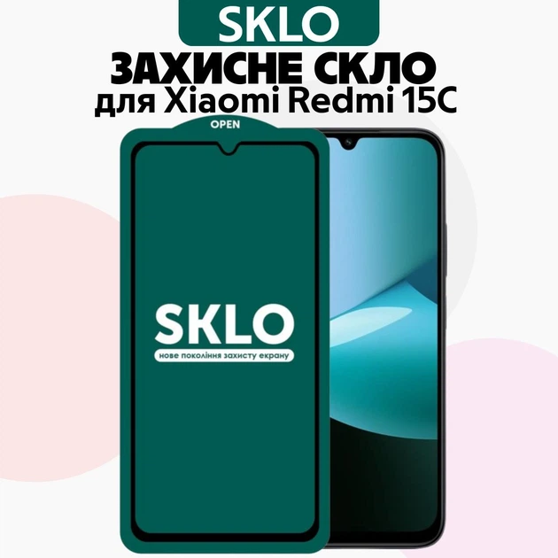 Захисне скло для Xiaomi Redmi 15C повноекранне загартоване глянцеве скло на редмі 15ц