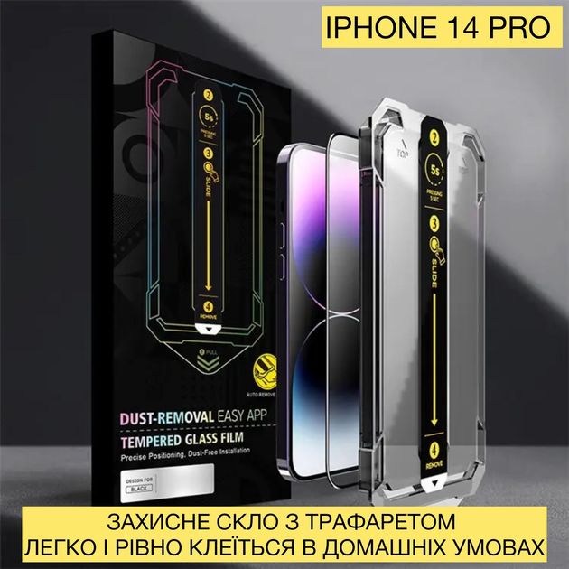Захисне скло з трафаретом Premium Zifriend Dust-Removal + Easy App для Apple iPhone 14 Pro