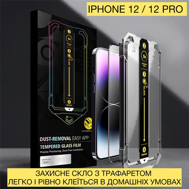 Захисне скло з трафаретом Premium Zifriend Dust-Removal + Easy App для Apple iPhone 12 / 12 Pro