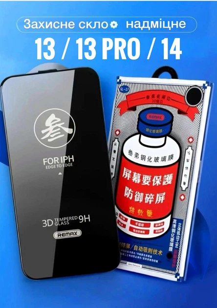 Захисне скло на екран для Apple iPhone 13 / 13 Pro / 14 REMAX Преміум Повноекранне 4-шарове 9H 3D Black