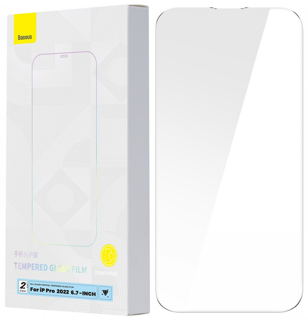 Захисне скло iPhone 14 Pro Max прозоре на весь дисплей 0.3mm, 9H, All-Glass Crystal Glass Film, Baseus (SGBL100302) комплект