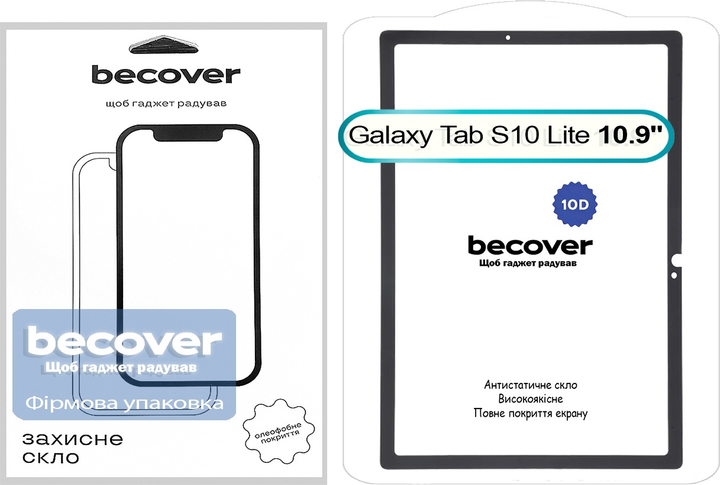 Захисне скло BeCover 10D для Samsung Galaxy Tab S10 Lite SM-X400/406 10.9" Black (BC713817)