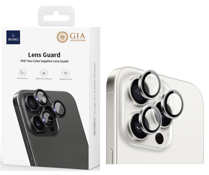 Захисне скло камери iPhone 15 Pro Max PVD Dual Color Sapphire Lens Guard LG-003 White Titanium WiWU