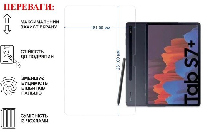Захисне скло для планшета Samsung Galaxy Tab S7 Plus, товщина 0,28 мм