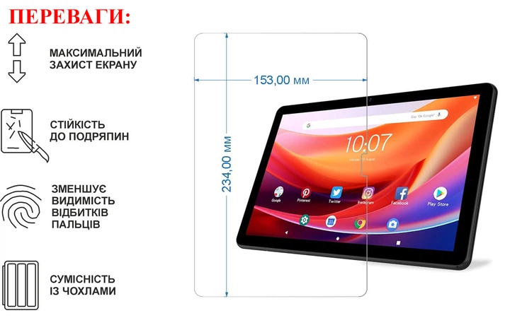 Захисне скло для планшета Pritom Tab10, товщина 0,28 мм