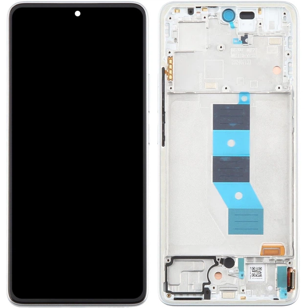 Дисплей модуль тачскрин Xiaomi Redmi Note 14 5G чорний OLED з рамкою сріблястого кольору Mystique White High Copy