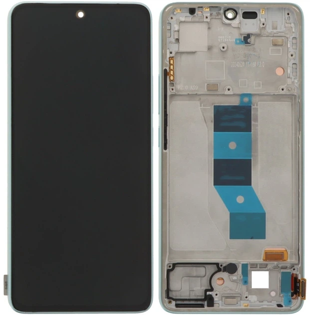 Дисплей модуль тачскрин Xiaomi Redmi Note 14 5G чорний OLED з рамкою зеленого кольору Coral Green High Copy