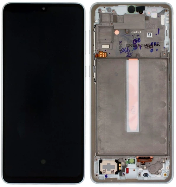 Дисплей модуль тачскрін Samsung A336 Galaxy A33 5G чорний Original PRCьна записка у рамці сріблястого кольору, White, GH82-2