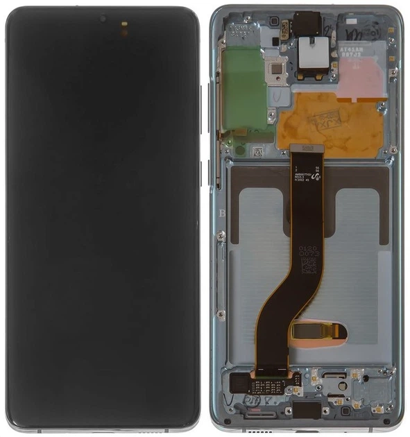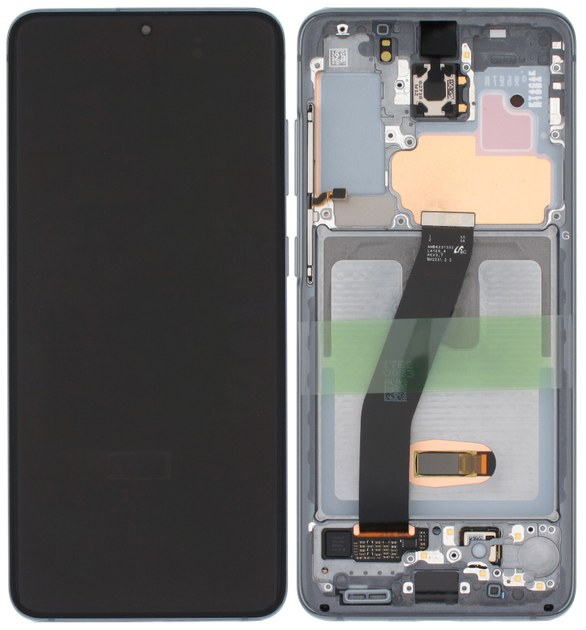 Дисплей модуль тачскрін Samsung G980 Galaxy S20 /G981 чорний OLED з рамкою блакитного кольору Cloud Blue High Copy