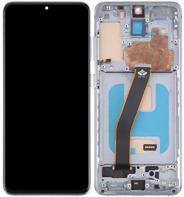 Дисплей модуль тачскрін Samsung G980 Galaxy S20 /G981 чорний OLED з рамкою сріблястого кольору Cloud White High Copy
