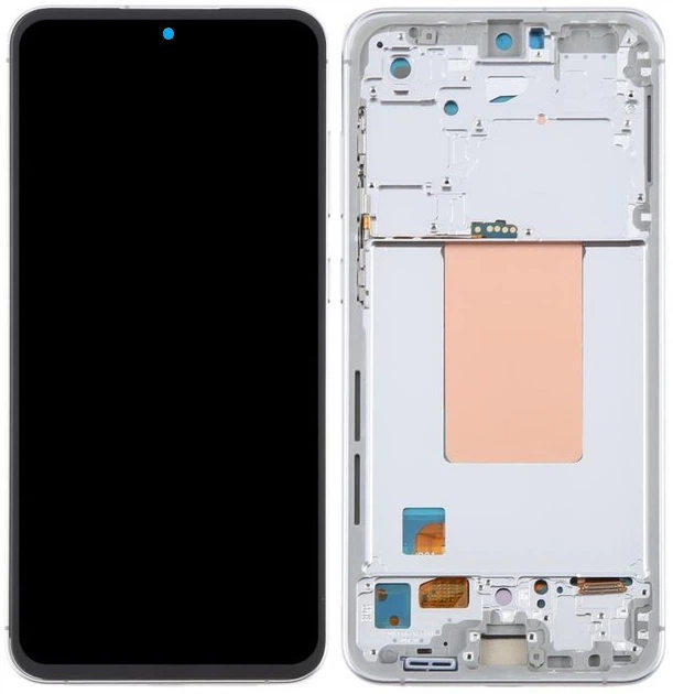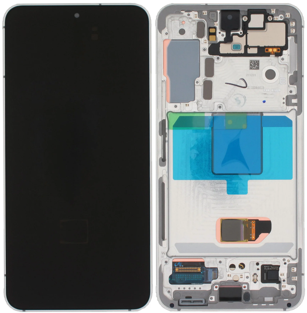 Дисплей модуль тачскрин Samsung S901 Galaxy S22 5G чорний Amoled Original PRC сервісне паковання з рамкою білого кольору Whi