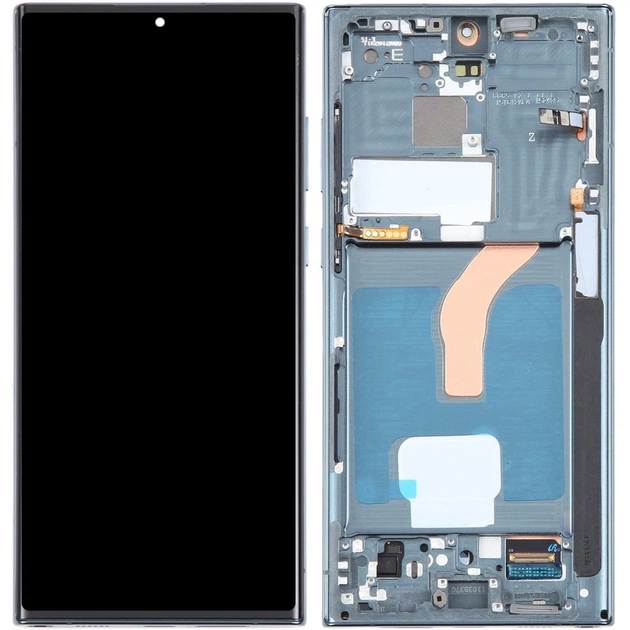 Дисплей модуль тачскрин Samsung S908 Galaxy S22 Ultra 5G чорний Amoled Original PRC Assembled з рамкою сірого кольору Graphi