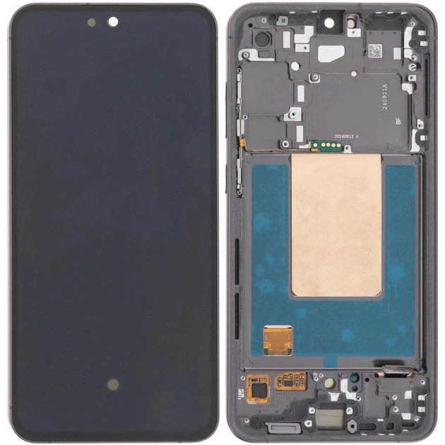 Дисплей модуль тачскрин Samsung S721 Galaxy S24 FE черный Amoled Original PRC Assembled с рамкой серебристого цвета Blue Yel